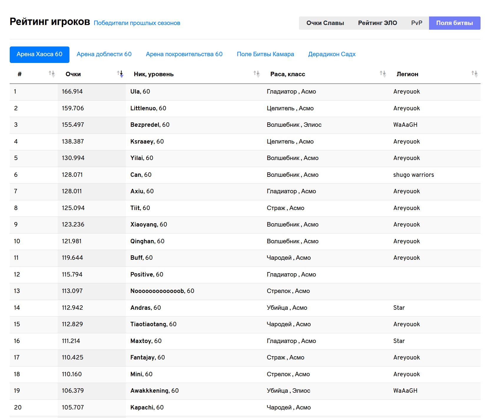 Как и любая ММОРПГ игра подразумевает под собой соперничество: все мы видели неоднократно рейтинги событий, которые включали от накопления очков славы до различных батлграундов. Мы же решили выяснить кто же лучший из лучших, поэтому сделали рейтинг ЭЛО, который обобщает ваши достижения в остальных мероприятиях. Рейтинг обновляется раз в месяц - вместе с фиксацией результатов каждого 1 числа в 9.00 будет происходить рестарт со сбросом рейтинга и началом нового сезона.